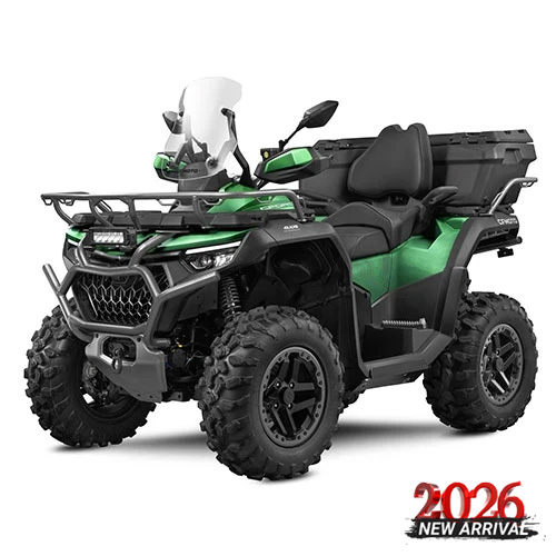 ATV CFMOTO CFORCE 1000 X10 OVERLAND EPS Euro5+ Verde 2026 este vârful de gamă al seriei CFORCE, creat pentru utilizatorii care cer maximum de performanță, confort și dotări. Echipat cu un motor V-Twin de 963 cmc, acest ATV oferă o forță impresionantă, ideală pentru sarcini grele, terenuri extreme și aventuri de durată. Versiunea OVERLAND adaugă protecții extinse, cutii laterale, parbriz și scuturi, transformând vehiculul într-un partener complet pregătit pentru expediții. Omologarea Euro5+ asigură compatibilitate legală și emisii reduse. Servodirecția electrică (EPS), suspensiile independente și tracțiunea 4x4 selectabilă cu diferențial blocabil garantează control total în orice condiții. Culoarea verde îi accentuează caracterul off-road și spiritul aventuros. Este alegerea perfectă pentru cei care nu vor compromisuri.