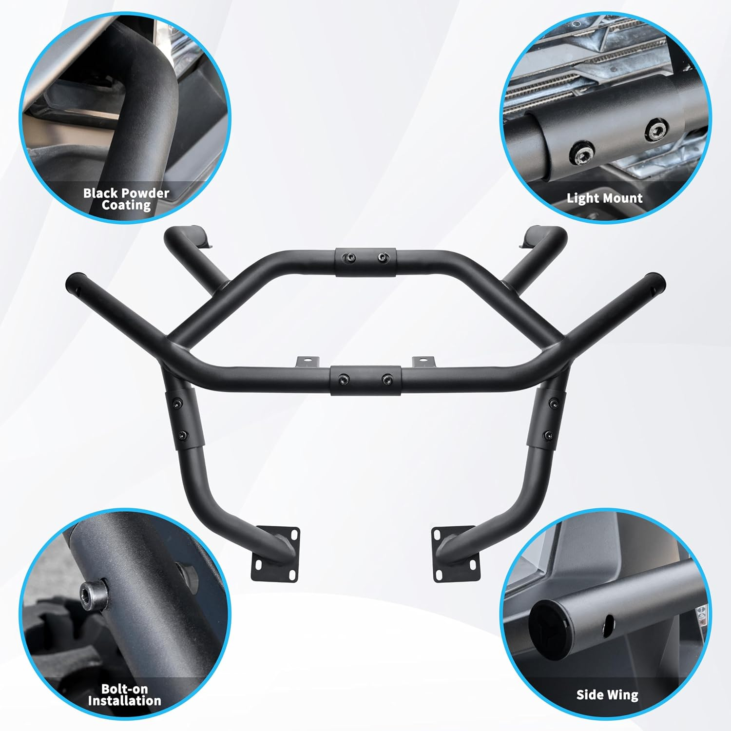 Bullbarul fata pentru Maverick Trail ofera o protectie solida partii frontale a SSV-ului tau, protejand cadrul si componentele impotriva impacturilor, pietrelor si altor obstacole pe teren accidentat. Fabricat din otel rezistent si tratat anticoroziune, asigura durabilitate si performanta indelungata. Designul compact si agresiv se integreaza perfect cu liniile vehiculului, adaugand un plus de stil si robustete. Montajul este simplu si precis, fara a necesita modificari suplimentare, fiind accesoriul ideal pentru pasionatii de off-road.