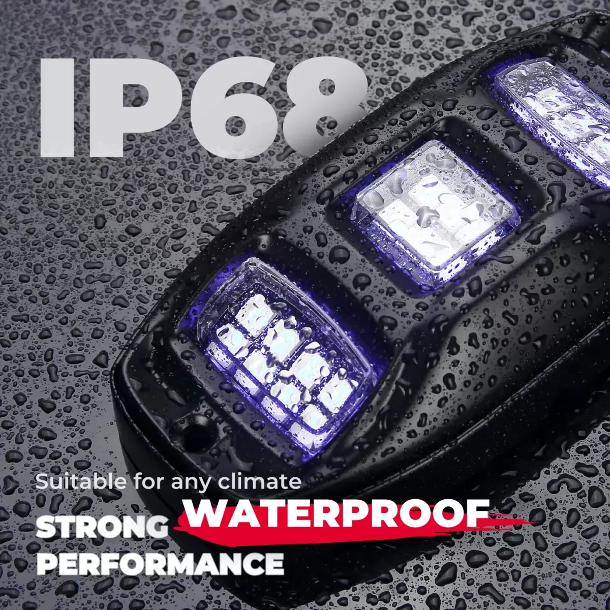 Protectie: Grad impermeabilitate IP68 – rezistent la apa, praf, noroi